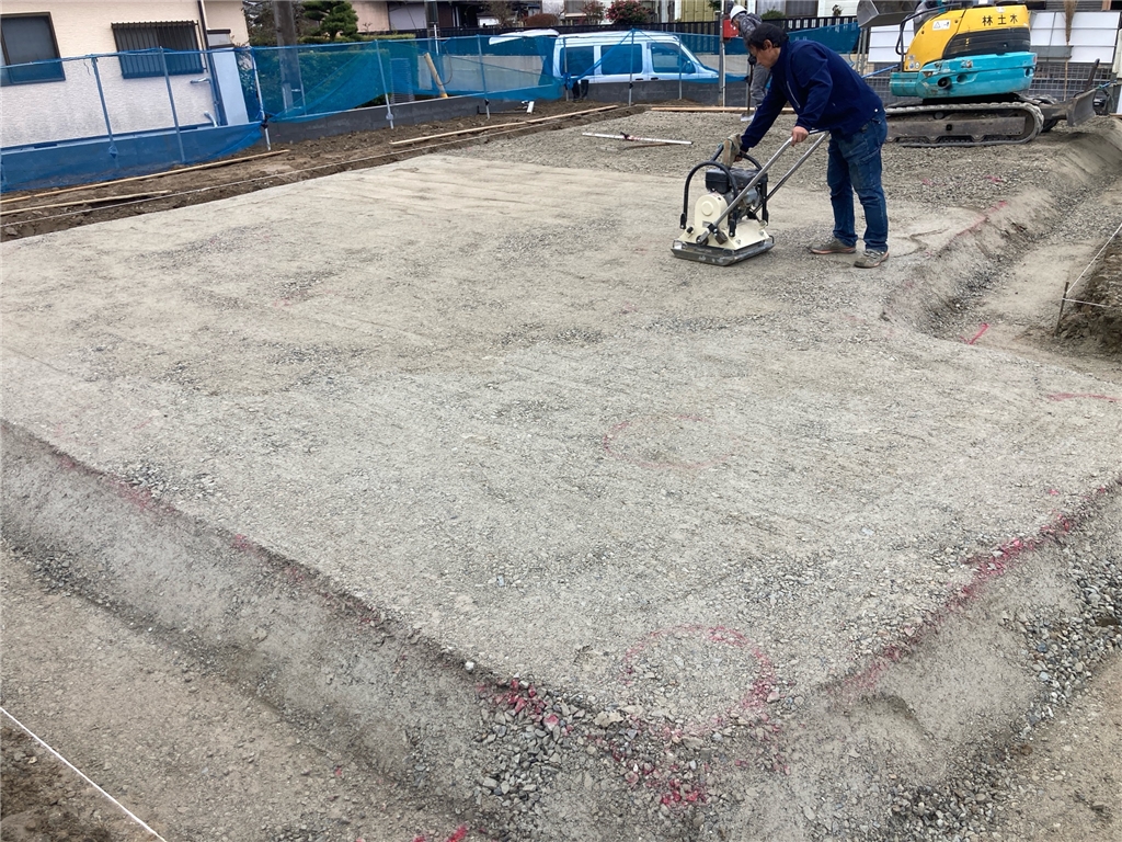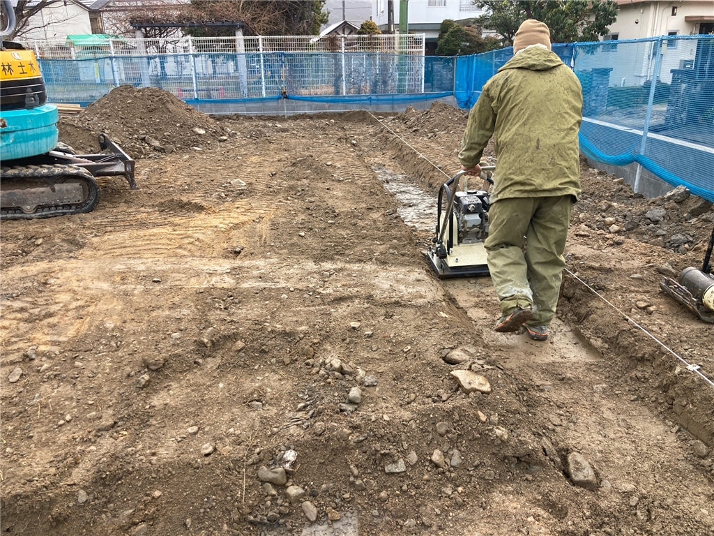 基礎工事(転圧、砕石、防蟻シート)