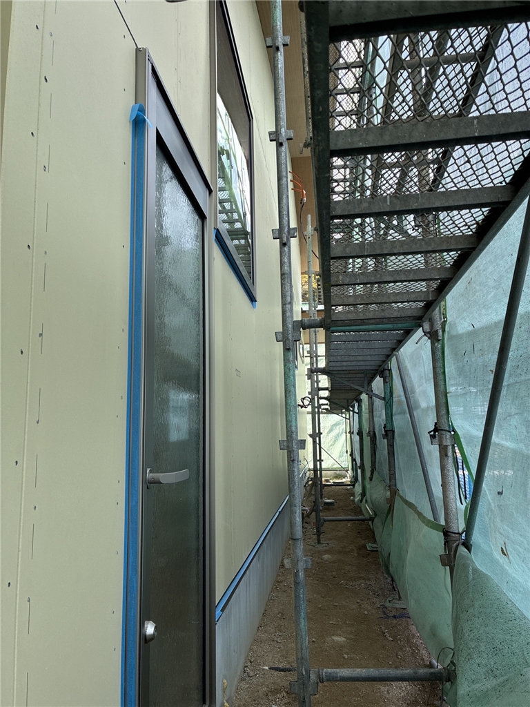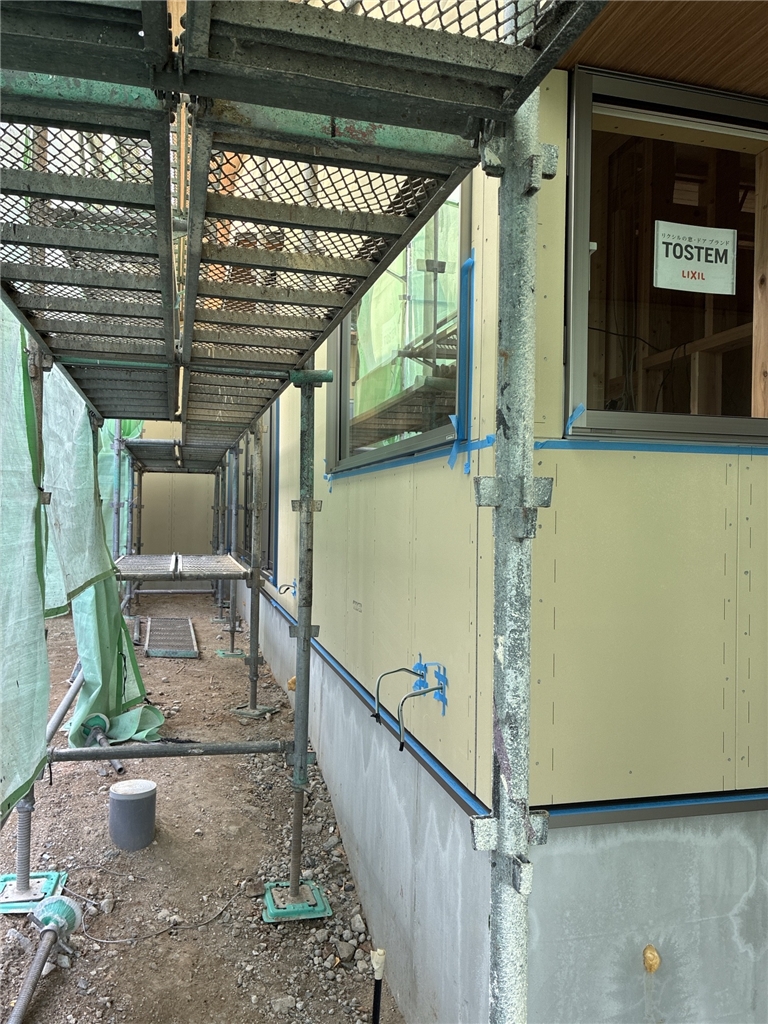 サイディング工事完了(コーキング処理中)