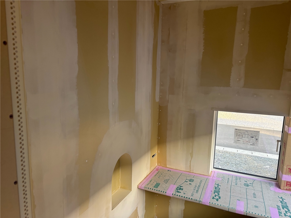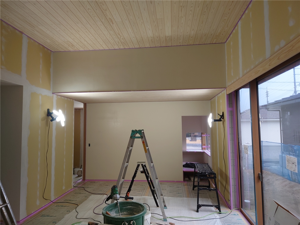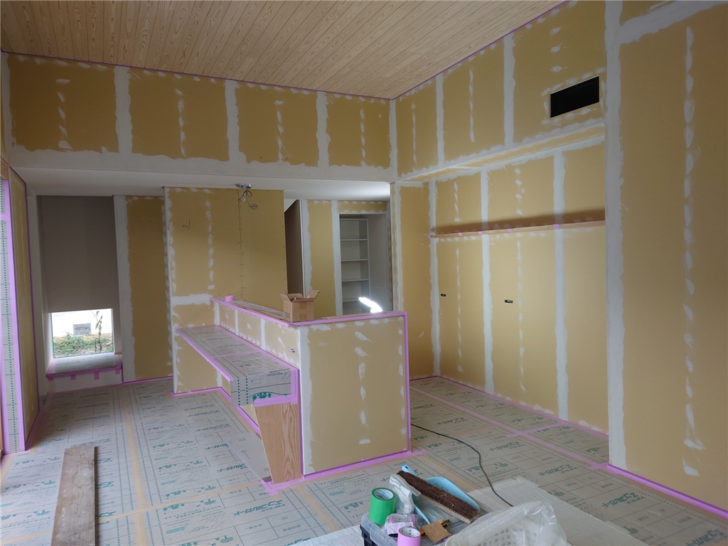 左官工事(珪藻土下地パテ処理中~)