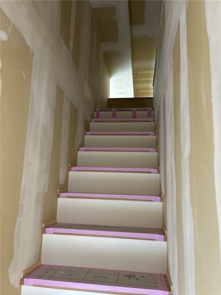 木工事(ボード貼り中~階段施工段取り)
